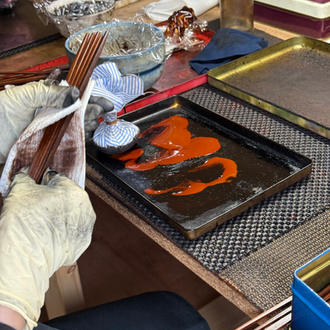 お箸や器の最終仕上げとして、漆を何層にも丁寧に塗り重ねることで、美しい光沢と耐久性が加わります。